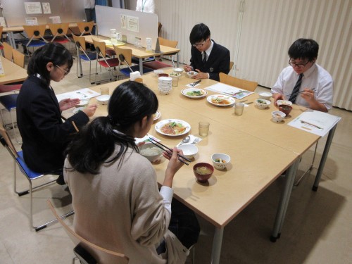 三河島菜フェアのメニューを試食する都立農産高校の生徒たち