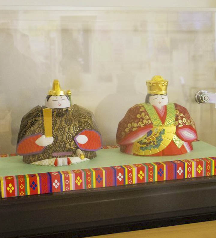 這裡有平野千里氏的作品“吉野雛”。用奈良縣以櫻花而出名的“吉野地區”的名字冠名。看起來一個一個的,像是櫻花般簡單的形狀,但整體來看,卻非常優雅華麗。這個女人節人偶雖然是簡單的圓乎乎的形狀,卻可以變化成艷麗強勁的外形。