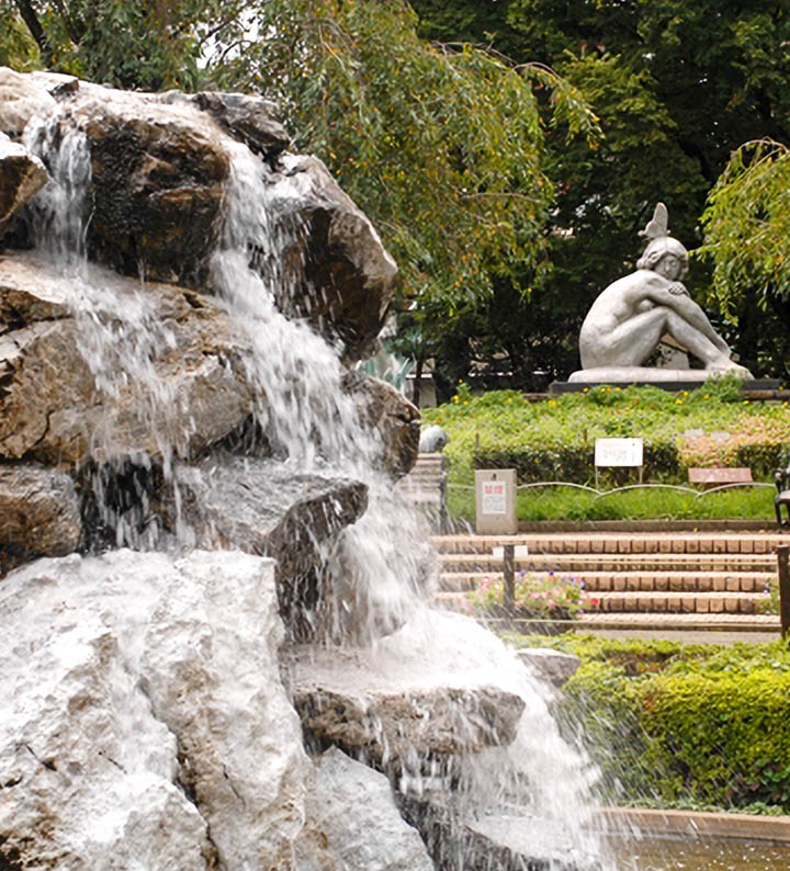 公園の中央には、長崎の平和祈念像の作者の北村西望氏の彫像「夢」があります。春には、ソメイヨシノなどの桜が咲き乱れ、花見会場として開放されています。この公園隣の「実のなる木公園」には、四季折々の実のなる木が植樹されています。