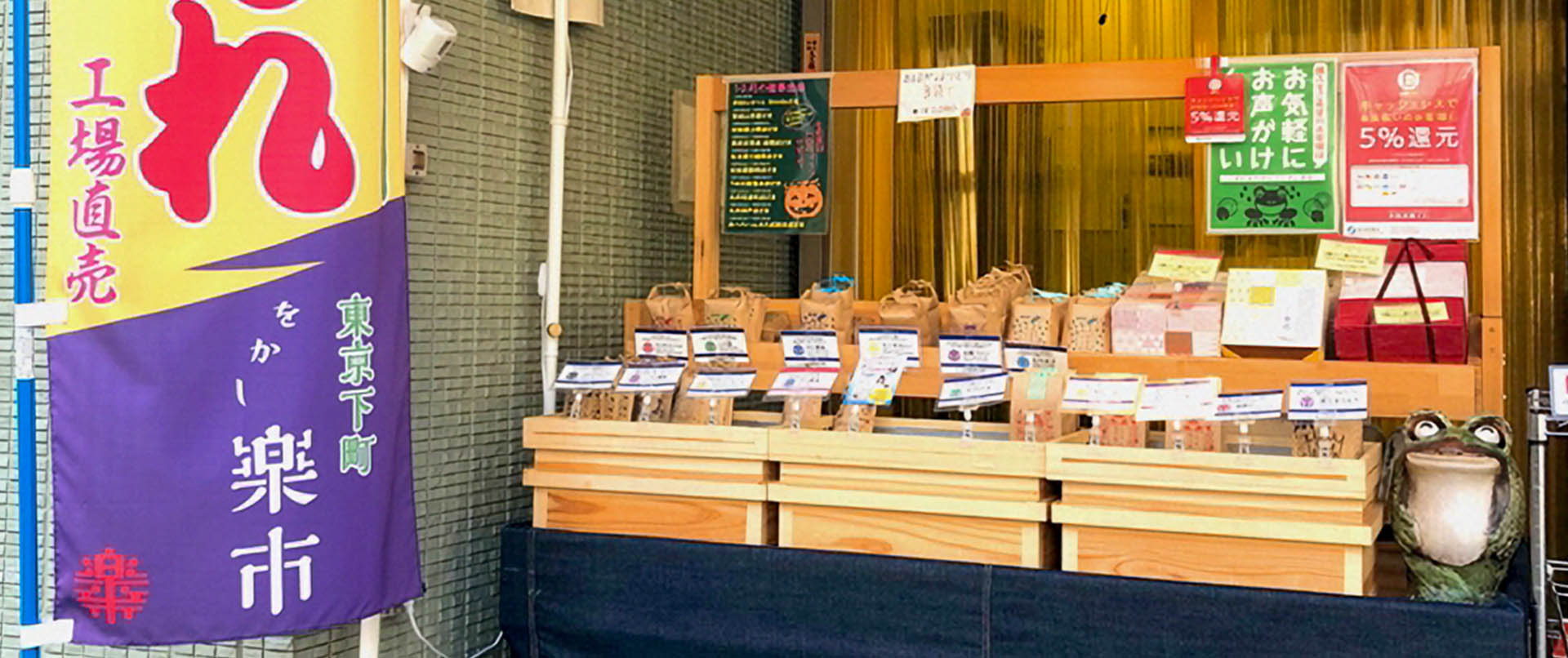 製作大米點心的工廠所開設的點心店。 雪餅脆香,好吃得容易上癮。 裝在可愛的印著圖案的米袋裡的點心也在百貨商場裡銷售,非常適合作為禮物贈人。