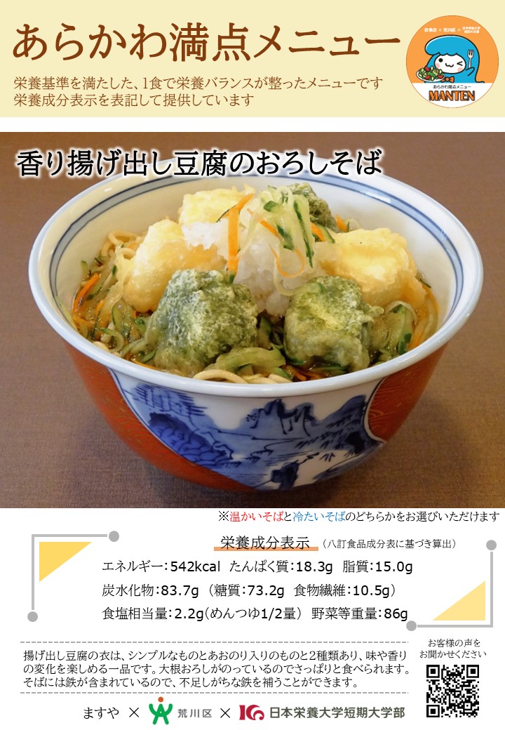 香り揚げ出し豆腐のおろしそば(700円)