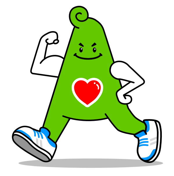 ウォーキングシューズのデザインを取り入れ、アプリの内容を視覚的にわかりやすくしました。「レ」の力こぶには前向きな「チャレンジ」の意味を込めました。全体的に丸みを帯びた親しみやすいシルエットにしました。健康を表す明るいグリーンとビタミンカラーのオレンジを使用し、ポップで元気なイメージが伝わるようにしました。
